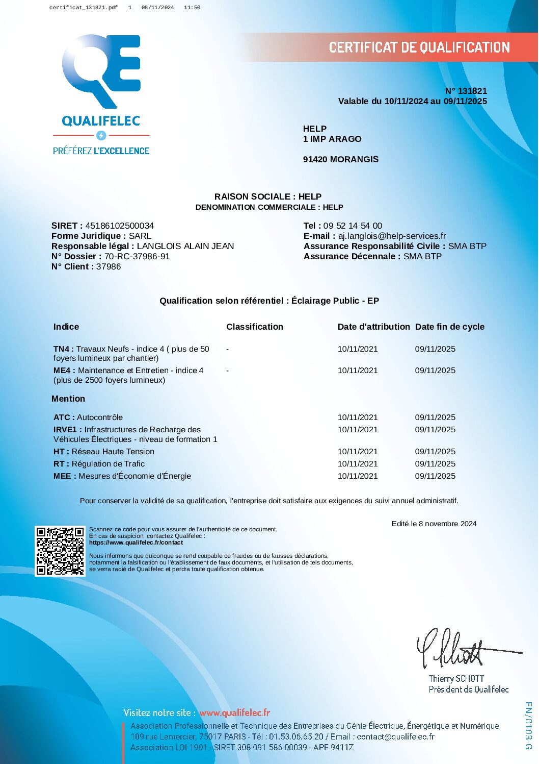 • ME4 : Maintenance et Entretien – indice 4 (plus de 2500 foyers lumineux)
